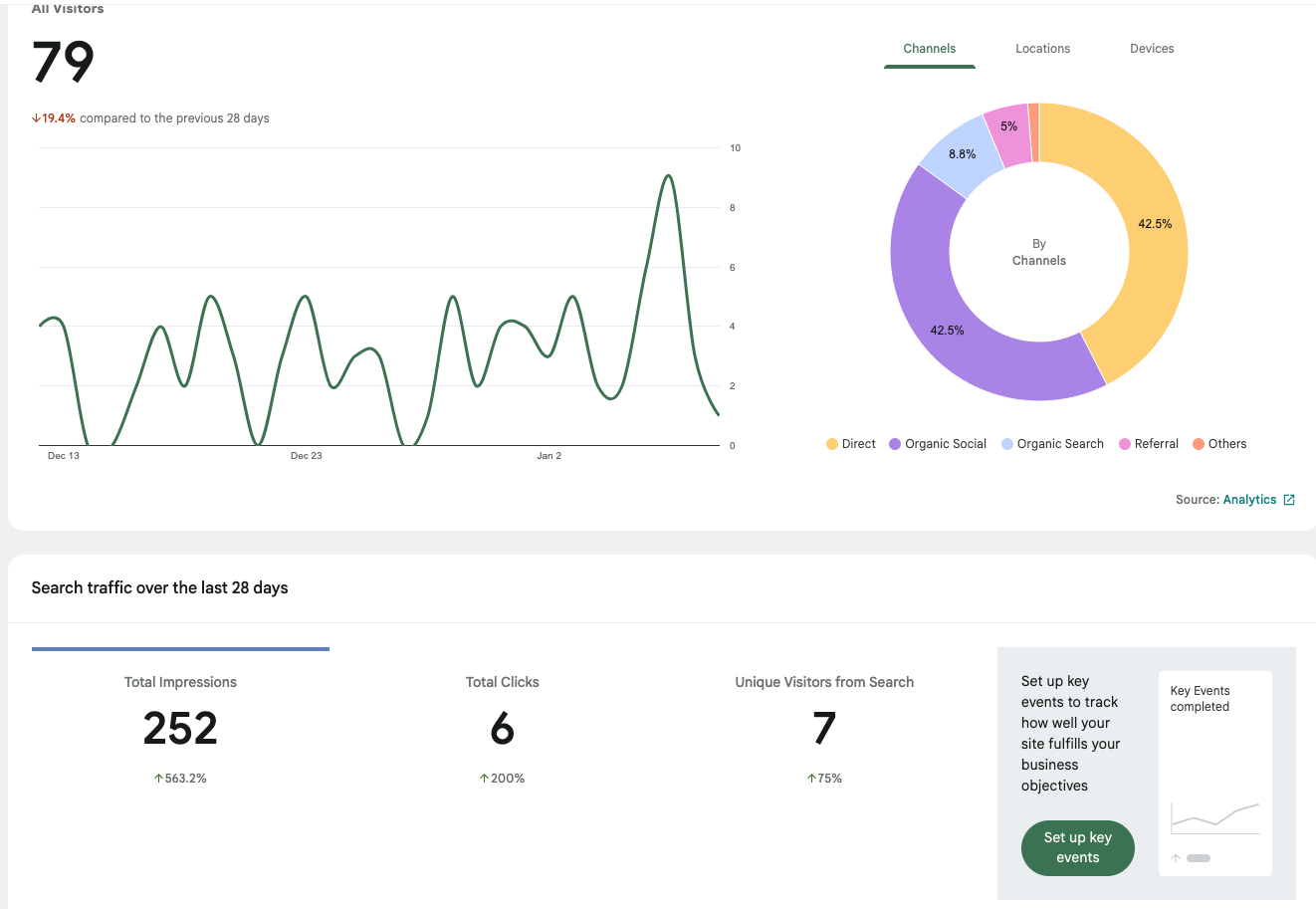 There was a major dip in the blog growth end of December. I don’t know why my sessions or users plunged. However it slowly picked up after the G Site Kit plugin started working again